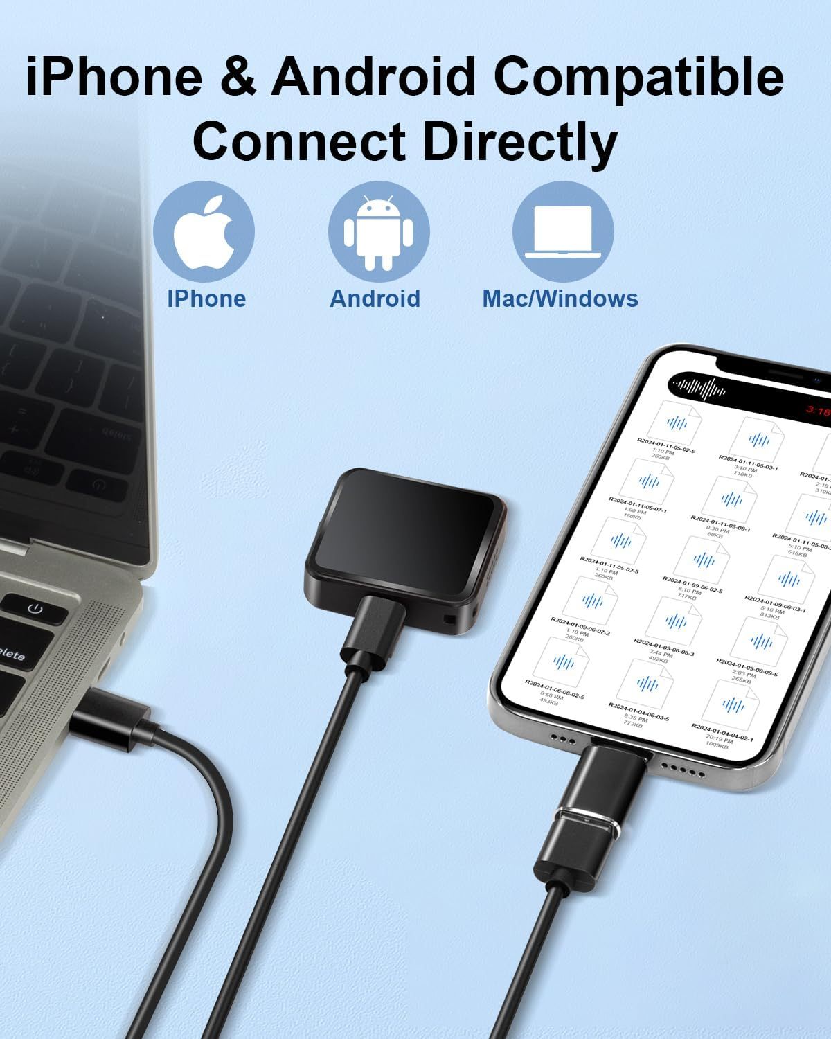Magnetic Digital Voice Recorder With AI-Triple Noise Reduction,Portable Audio Recorder Compatible With Smart Cell Phone PC Recording Device For Lectures,Meetings,Interviews,Black